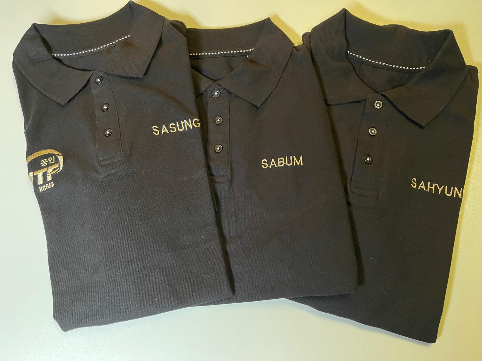 ITF Approved Polo shirt in black featuring the ITF Approved logo and Boosabum embroidered in gold.
